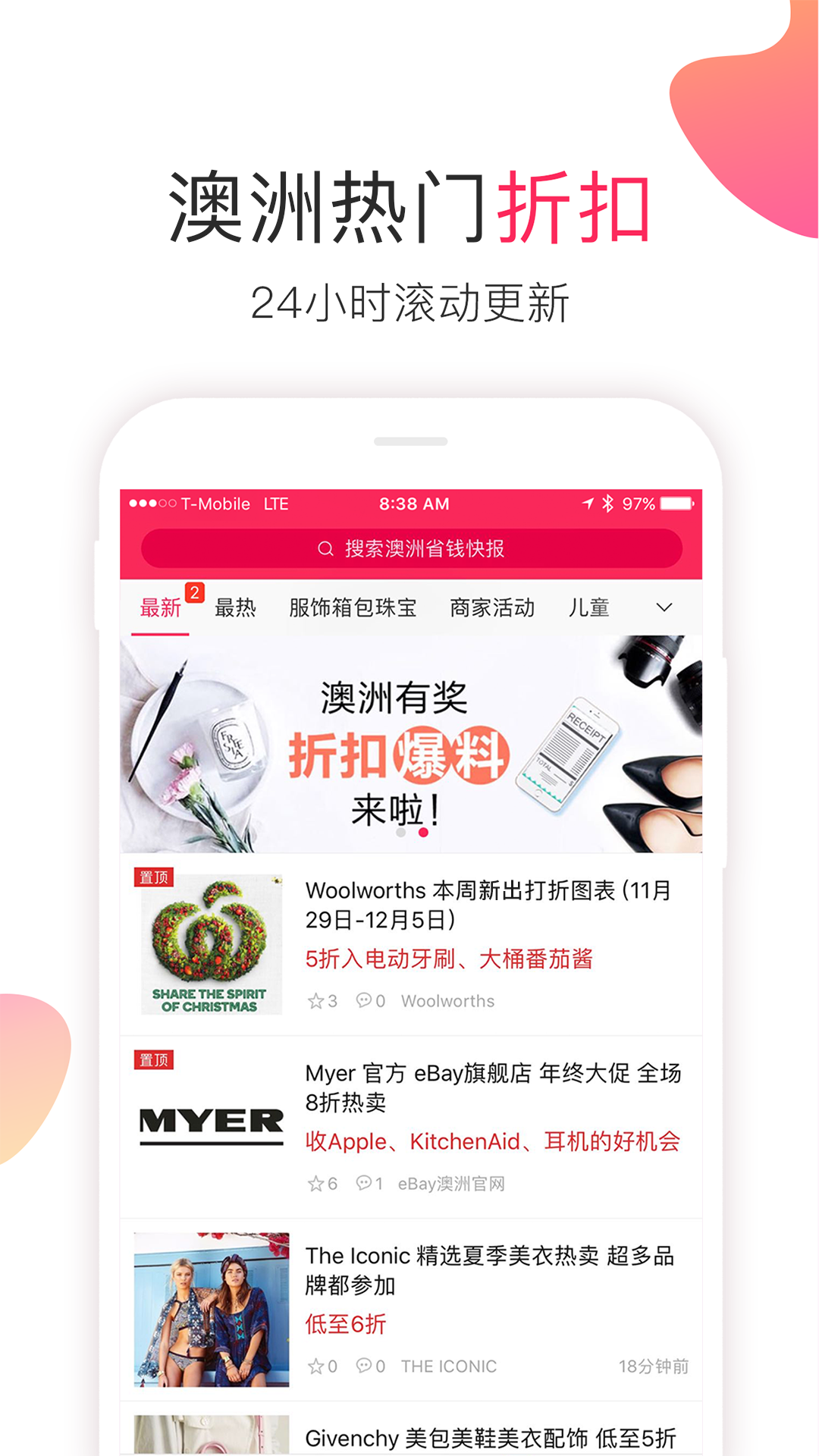 澳洲省钱快报客户端,提供每日热门折扣信息,各大节日的超强导购,深扒省钱超值 Deal,为澳洲华人海淘代购提供各类热门折扣信息;高品质生活,从省钱快报开启!