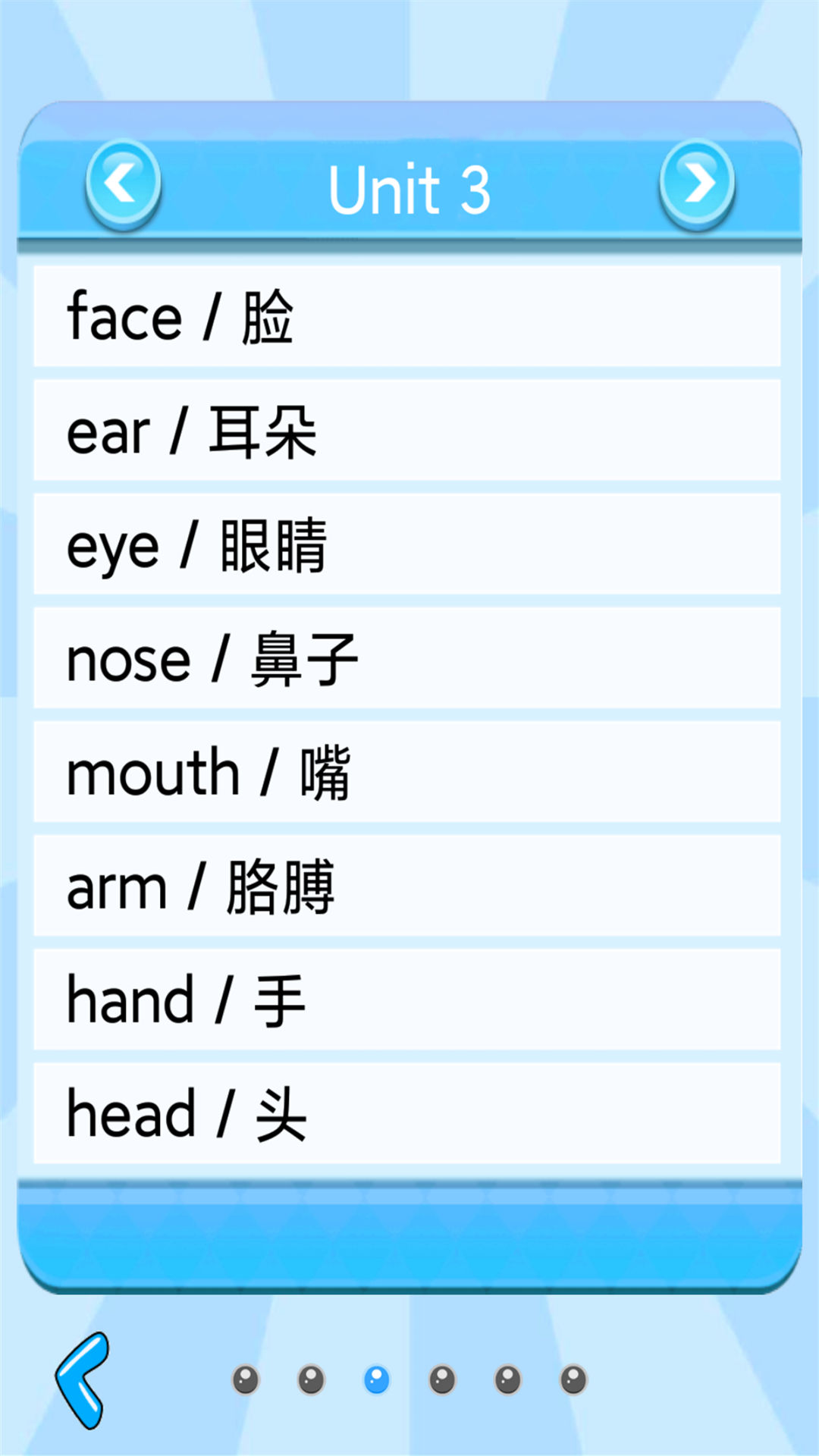 单词卡片:课本配套单词的朗读,翻译,音标,彩图全都有,让学生图形并茂学单词。