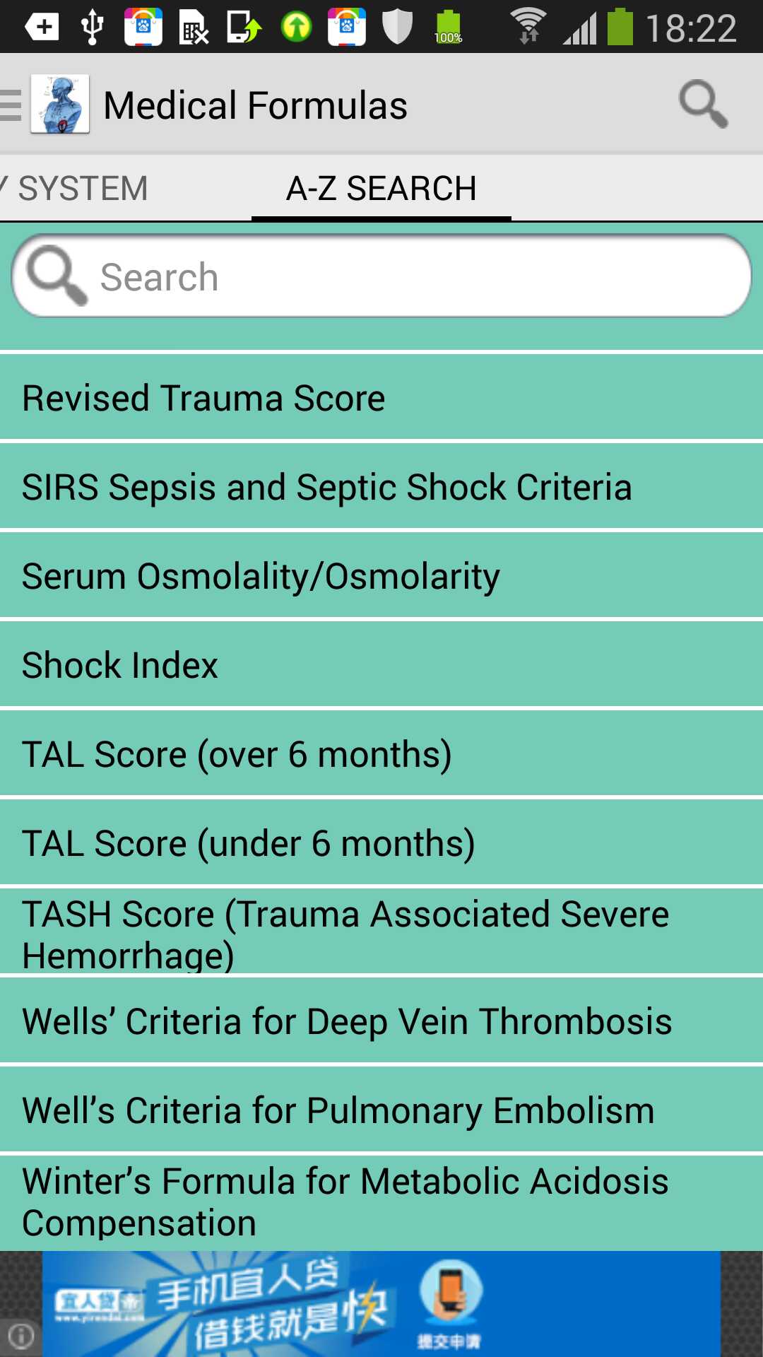 Medical Formulas provides an intuitive access to the main equations, formulas and scores used in clinical practice, classified in different specialties, that makes it a powerful medical calculator. Created by developers specialized in the subject, this free app allows to reduce the required time to get results in clinical work. All based on the main scores validated by the scientific community.Medical Formulas is intuitive, easy to use and thoroughly tested. Oriented utility for physicians, doctors, residents, medical students and other health professionals.Medical Formulas includes numerous criteria, functions and scores of different specialties: Internal Medicine, Nutrition, Metabolism, Endocrinology, Medication, Gynecology, Obstetrics, Cardiology, Pulmonology, Nephrology, Infectology, Neurology, Psychiatry, Therapy, Intensive Care, Emergency, Gastroenterology, Hematology, Oncology, Hepatology, Orthopedics, Pediatrics, Surgery, Toxicology, Trauma. Among the most used functions it highlights:- Ideal Body Weight- Body Mass Index BMI- Body Surface Area- Winter’s Formula for Metabolic Acidosis Compensation- LDL Calculator- Anion GAP- Maintenance Fluids Calculator- Parkland Formula for Burns- Pregnancy Due Dates Calculator- APGAR Score- Emergency Heart Failure Mortality Risk Grade- Corrected QT Interval- Geneva Score for Pulmonary Embolism- Mean Arterial Pressure- Framingham Coronary Heart Disease Risk Score- Well’s Criteria for Pulmonary Embolism- PSI Port Score: Pulmonary Severity Index- Oxygenation Index- Light’s Criteria for Exudative Effusion- Creatinine Clearence- MDRD GFR Equation- Duke Criteria for Infective Endocarditis- SIRS Sepsis and Septic Shock Criteria- CURB 65 Severity Score- CAGE Questions for Alcohol Use- Intracerebral Hemorrhage (ICH) Score- Patient Health Questionnaire-9- Glasgow Coma Scale- APACHE II- Shock Index- Ramson’s Criteria for Pancreatitis Mortality- Arterial Blood Gas (ABG) Analyzer- ABC Score for Massive Transfusion- PERC Rule for Pulmonary Embolism\\t- King’s College Criteria for Acetaminophen Toxicity- Child-Pugh Score for Cirrhosis Mortality- Absolute Reticulocyte Count and Reticulocyte Index\\t- Glasgow Alcoholic Hepatitis Score- Calcium Correction for Hypoalbuminemia\\t- Pittsburgh Knee Rules- Wells’ Criteria for Deep Vein Thrombosis\\t- Pediatric Ins and Outs (per kg and per hour)- Pediatric Endotracheal Tube (ETT) Size\\t- Injury Severity Score (ISS)- Alvarado Score for Acute Appendicitis- Hunt and Hess Classification of Subarachnoid Hemorrhage\\t- Phenytoin Correction for Albumin Renal Failure- Serum Osmolality/Osmolarity- Opioid Risk Tool (ORT) for Narcotic Abuse- Acetaminophen Overdose and NAC Dosing\\t- ATRIA Bleeding Risk Score- TASH Score (Trauma Associated Severe Hemorrhage)- Revised Trauma Score- Absolute Neutrophil Count (ANC)- HIV Needle Stick Risk Assessment Stratification Protocol (RASP)