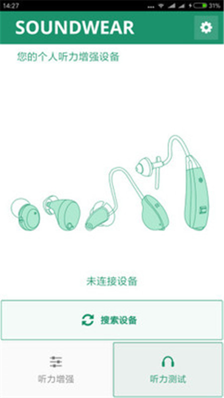 个人听力测试,让您对自己的听力情况更了解 通过蓝牙连接助听器,在手机上控制助听器 根据您的听力情况自动调节您的助听器,节省您的调节时间