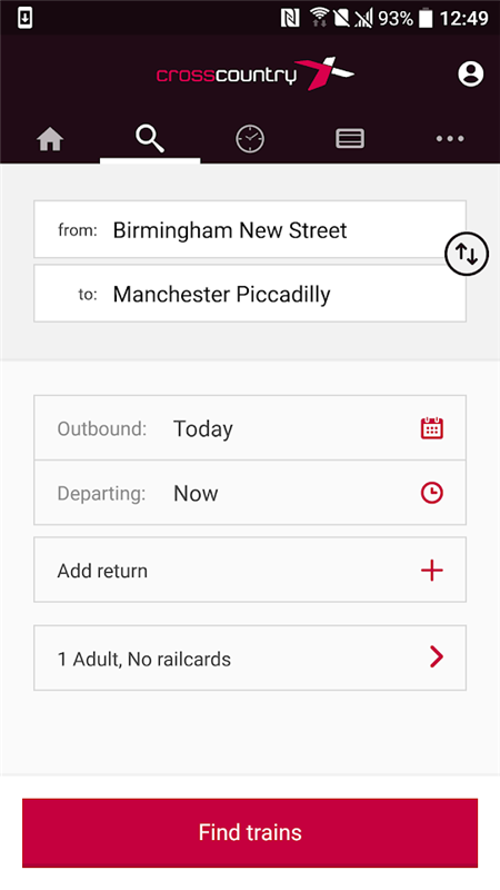 Book your train tickets quickly and easily with CrossCountry’s app. You can look up live train times, check real time running information and buy your train tickets for any train on the National Rail network. It’s free to download, and we won’t charge you a booking or credit card fee.