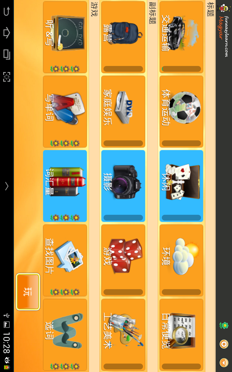 FunEasyLearn 是一种又容易又有趣的学习匈牙利语的新方式,无论您喜欢听异国的音乐,还是出国旅游,或者工作于一家跨国公司,又亦或和外国朋友聊天,都来获取免费词汇的应用程式吧!学习* 6000个单词与图像,充分说明单词和由匈牙利语为母语的人的发音录音和拼音。* 词汇涵盖 15 个专题并划为 140 个副主题。* 整个词汇已被翻译成 50 种语言:✔ 简化中文语 ✔ 繁体中文语 ✔ 丹麦语 ✔ 乌克兰语 ✔ 乌尔都语 ✔ 俄语 ✔ 保加利亚语 ✔ 克罗地亚语 ✔ 冰岛语 ✔ 加泰罗尼亚语 ✔ 南非语 ✔ 印地语 ✔ 印尼语 ✔ 土耳其语 ✔ 塞尔维亚语 ✔ 巴西葡萄牙语 ✔ 希伯来语 ✔ 希腊语 ✔ 德语 ✔ 意大利语 ✔ 拉脱维亚语 ✔ 挪威语 ✔ 捷克语 ✔ 斯洛伐克语 ✔ 斯洛文尼亞语 ✔ 斯瓦希里语 ✔ 日语 ✔ 朝鲜语 ✔ 格鲁吉亚语 ✔ 法语 ✔ 波兰语 ✔ 波斯语 ✔ 泰语 ✔ 爱沙尼亚语 ✔ 瑞典语 ✔ 立陶宛语 ✔ 羅馬尼亞语 ✔ 芬兰语 ✔ 英语 ✔ 荷兰语 ✔ 菲律賓语 ✔ 葡萄牙语 ✔ 西班牙语 ✔ 越南语 ✔ 阿塞拜疆语 ✔ 阿尔巴尼亚语 ✔ 阿拉伯语 ✔ 马其顿语 ✔ 马来语等。乐趣* 从 7 个有趣的游戏选择独特的娱乐方式学习。* 内置“类别旋转”功能,可允许应用程式为您随机选择一个主题,副主题和游戏以提高您的学习经验。容易* 使用应用程式时,无须互联网的连接。* 3 个难度级别:初级,中级和高级。* 从 50 个预编程界面语言里选择您的*语言教学 :匈牙利语,中国语,英语,德语,法语,西班牙语,俄语等。学习匈牙利语的应用程式是完全免费的!-------------------关于 FunEasyLearn.com:与 funeasylearn.com 的学习应用程式,您可以免费的学习匈牙利语。通过图像演示,录制的发音里学习超过 6000 个单词以及母语翻译者所翻译的 50 种语言:简化中文语,繁体中文语,丹麦语,乌克兰语,乌尔都语,俄语,保加利亚语,克罗地亚语,冰岛语,加泰罗尼亚语,南非语,印地语,印尼语,土耳其语,塞尔维亚语,巴西葡萄牙语,希伯来语,希腊语,德语,意大利语,拉脱维亚语,挪威语,捷克语,斯洛伐克语,斯洛文尼亞语,斯瓦希里语,日语,朝鲜语,格鲁吉亚语,法语,波兰语,波斯语,泰语,爱沙尼亚语,瑞典语,立陶宛语,羅馬尼亞语,芬兰语,英语,荷兰语,菲律賓语,葡萄牙语,西班牙语,越南语,阿塞拜疆语,阿尔巴尼亚语,阿拉伯语,马其顿语,马来语,匈牙利语等。此应用程式的词汇按主题划分并涵盖了日常世界里的大多数环节,从餐厅,酒店,家庭到工作场所,太空到动物王国。FunEasyLearn 是一种珍贵的学习工具,因为它有很多由专家们开发的好玩游戏。FunEasyLearn 是非常完美于任何想要学习匈牙利语,英语,德语,法语,西班牙语,意大利语,俄语等。请通过在 Android 市场留下了良好的评级以支持我们,或者如果您喜欢它,就与您的朋友在 Facebook,Twitter 或 Google+上分享这个应用程式。如果您有关于这个应用程式的任何问题,请随时让我们知道 support@funeasylearn.com-------------------参观我们:http://www.funeasylearn.com 喜欢我们:https://www.facebook.com/FunEasyLearn 跟随我们:https://twitter.com/funeasylearn 围绕我们:https://plus.google.com/+Funeasylearn\\r
