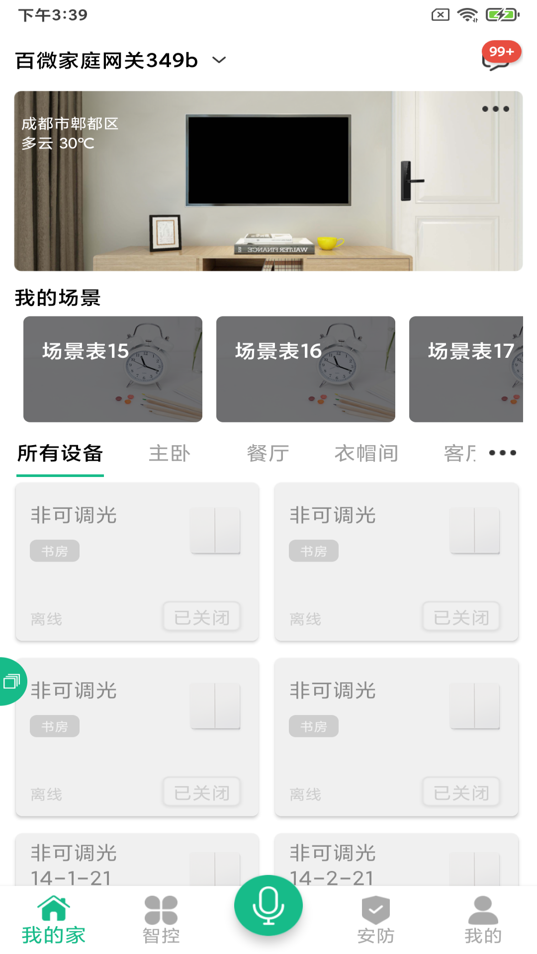 该软件为成都百微电子技术开发有限公司开发的智能家居 V3.0 的移动客户端应用,涵盖智能化无线设备的管理,远程控制,视频看家,智能安防,家居环境,智能门禁,联动、定时等控制等功能。