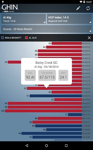 • View your most recent scores, revision scores, handicap history, tournament scores, and more\\r