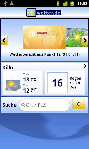 - Weltweite Ortewetter-Suche - Eine große Auswahl von Wetter-Videos, unter anderem mit dem Wetterbericht aus RTL Punkt 6, Wolkenfilm, Schnee- und Regenfilm, Windvorhersagen, Regenvorhersagen - Wetter-Trend mit 6-Tage Vorschau - Automatische Erkennung Ihres Aufenthaltsortes per GPS - Speichern Sie Ihre Orte direkt in Ihren Favoriten- Mit 3 verschiedenen Widgets erhalten Sie direkten Zugriff auf Ihren Lieblings-Ort- Platzsparend: Die App kann auf die SD-Karte verschoben werden