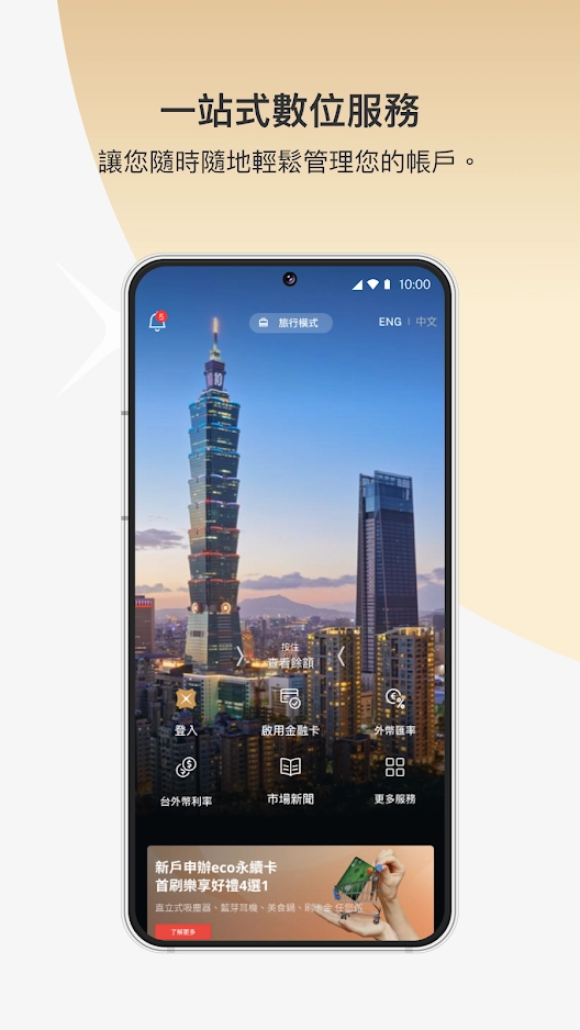 无需切换画面,一眼掌握存款、投资、贷款及信用卡帐户资讯帐户资产总览。