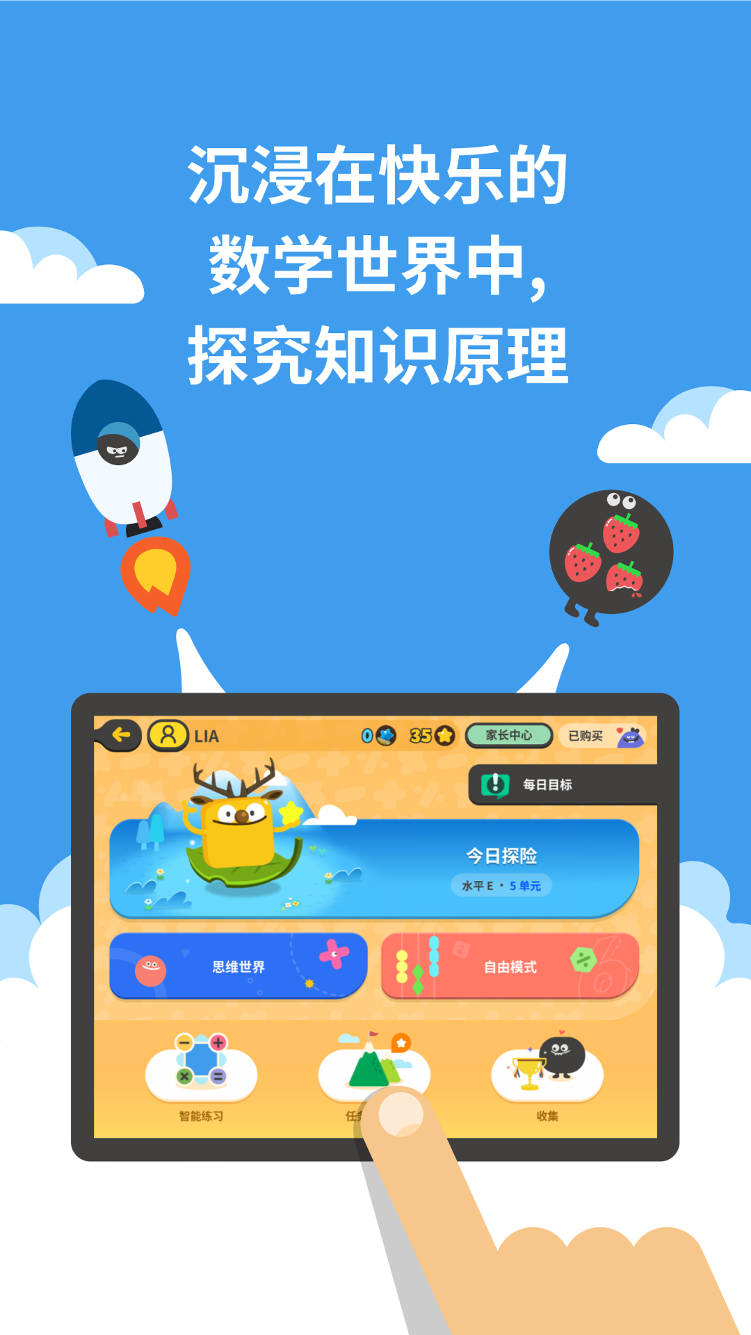 - 全面:2000+丰富有趣的挑战活动,内容包括从“简单认识数字”到“快速乘除”、“图形认知”到“空间几何”等七大生活常用数学概念