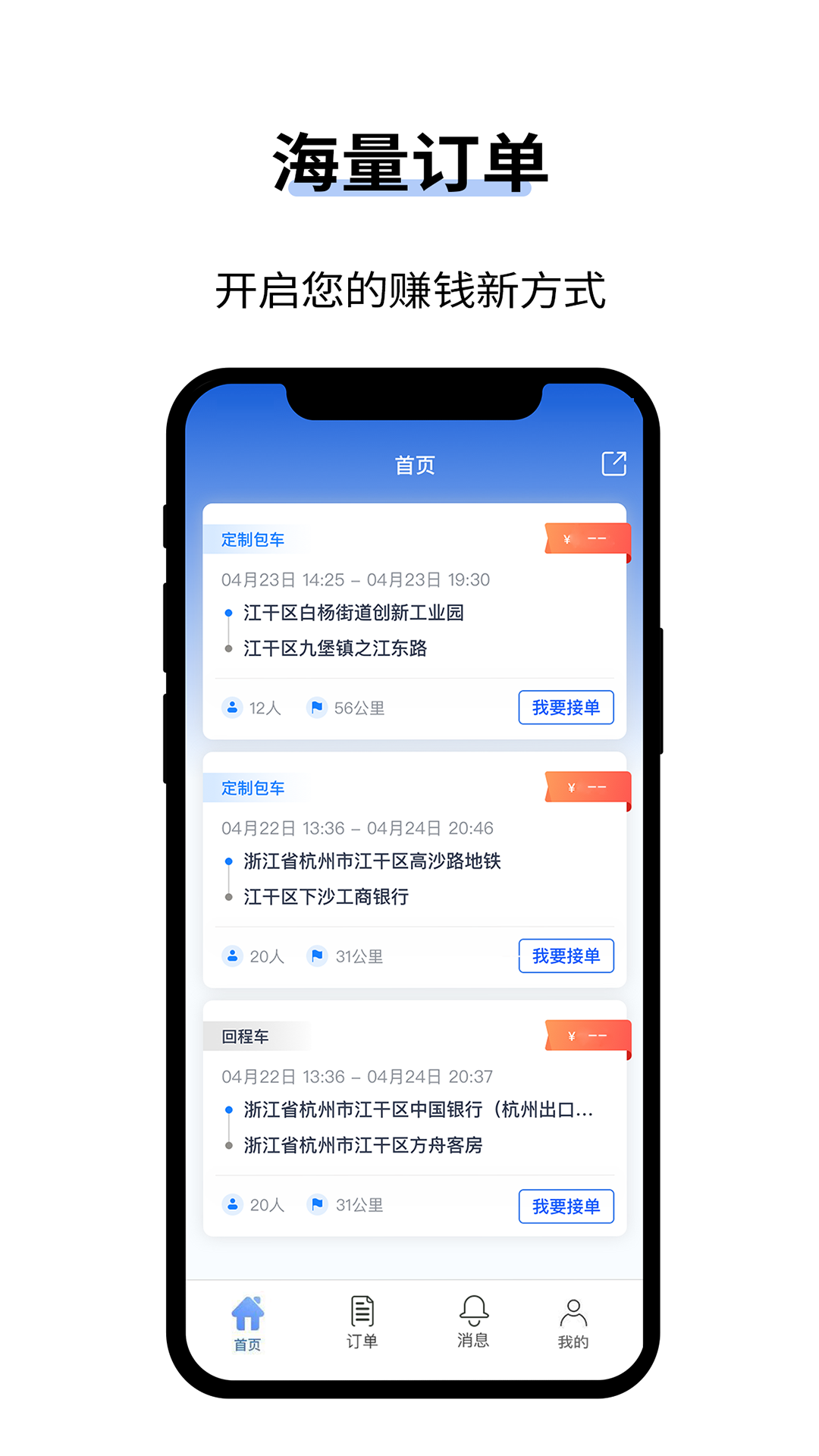 人人巴士客运端,服务于客运企业,倾心打造“公平公正” “舒适安全” “智能便捷”的服务理念,在线接单,降低空车闲置率,提升客企营收;在线化管理监督,便捷、高效,出行更安全。\\r