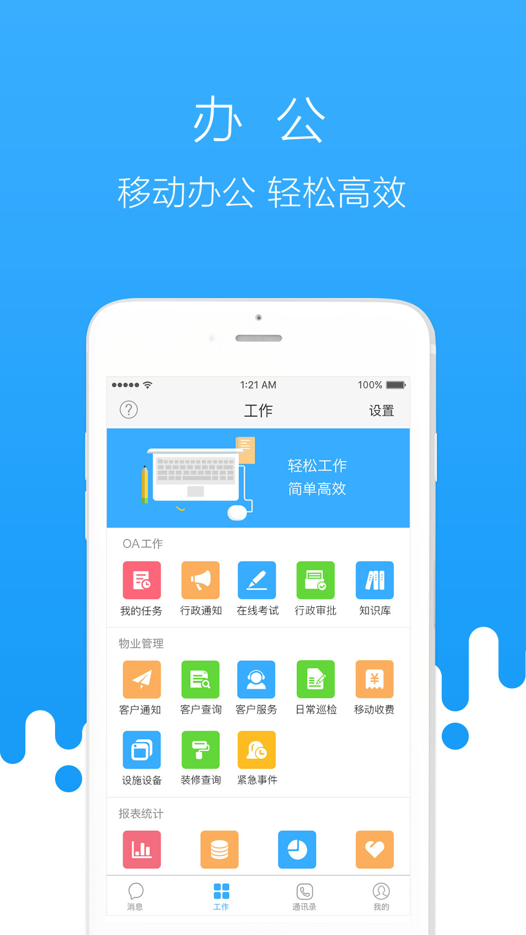 专业化智慧社区平台。 同时涵盖移动办公、收费管理、服务管理,在支撑物业人员移动办公,提升财务管控及收费率,高工作效提率的同时,提升服务品质,提高客户满意度。零距离与业主沟通,为业主提供更加高品质的管家式服务。
