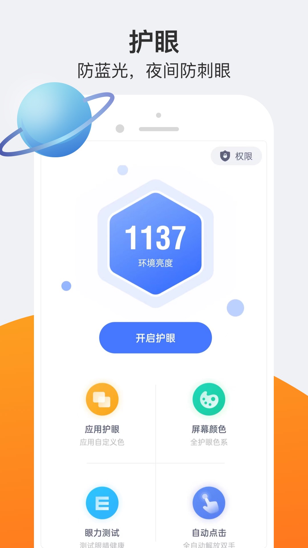 《小护眼》是一款保护眼睛的轻量级应用。可以在系统低亮度的基础上再降低屏幕亮度,让您在夜晚关灯的情况下保护眼睛避免高背光伤眼,并且同时拥有《夜间模式》,《抗疲劳模式》,《减蓝光护眼模式》,《冷色调模式》,是您夜间玩手机的护眼好帮手。