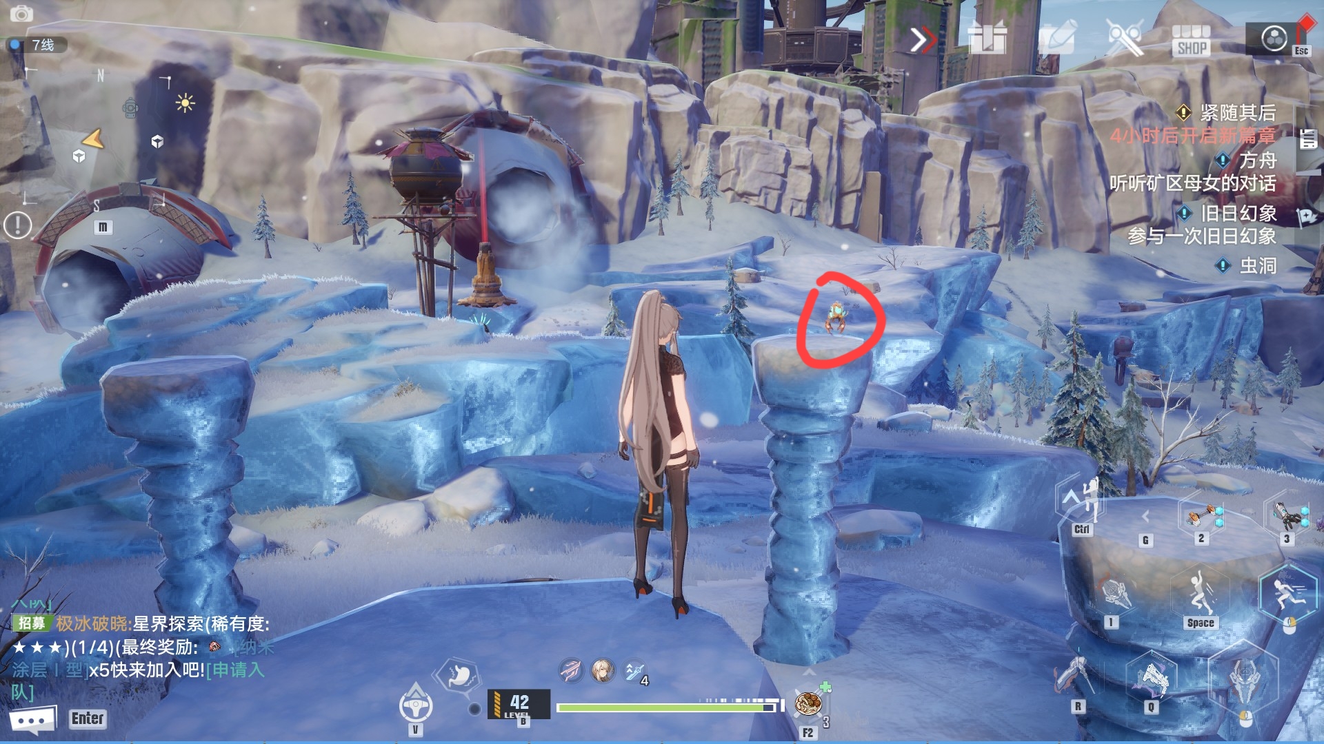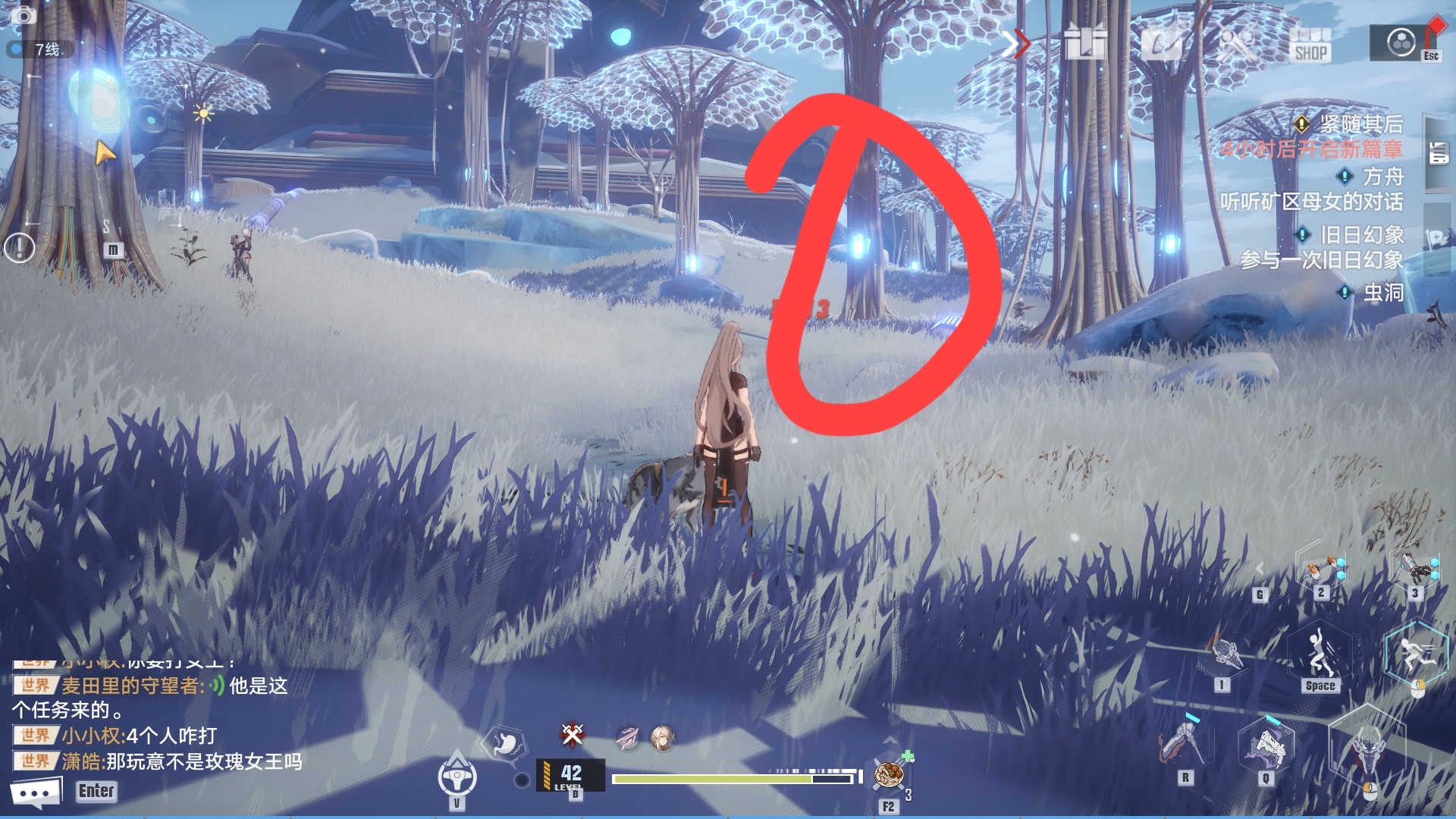 上图这些蓝色的像树的就是原能树,途中圈出来的每棵树都有,正常为发出蓝光,如果原能树是红光就可以靠近与原能树对话,消耗相应的材料完成小游戏修好原能树就可获取一枚黑核(又是新的黑核获取途径,呜呼,上线冲鸭虽然我 10 页黑核无金....)