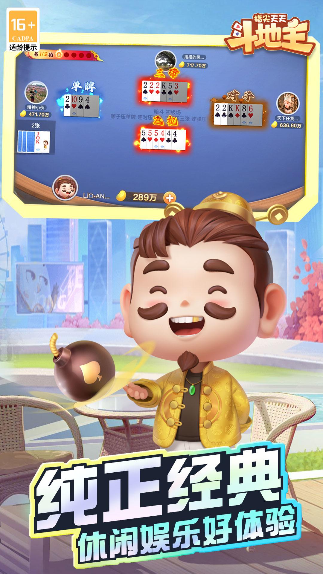 真人在线对战。连炸、不洗牌、癞子、经典多种玩法畅玩刺激的指尖天天斗地主。