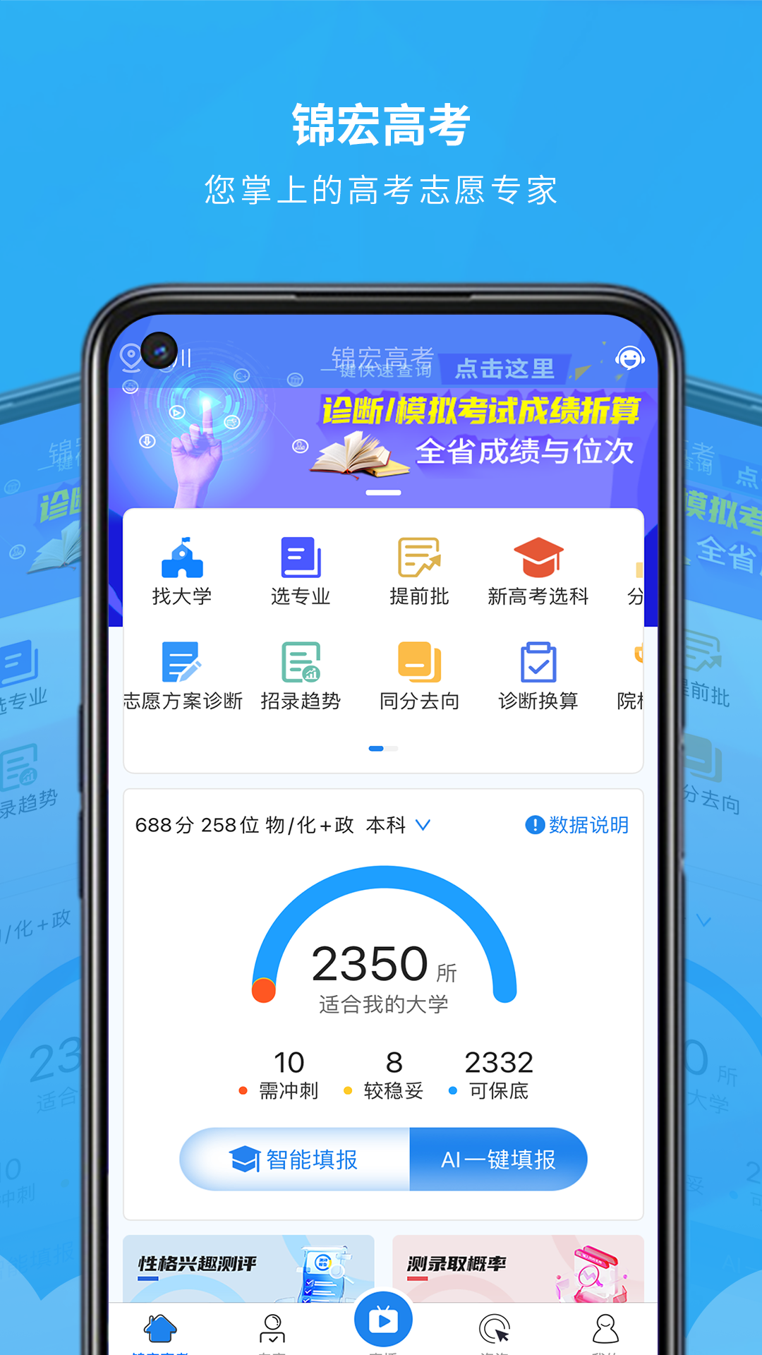 锦宏高考 APP 是一款为全国 31 个省份的高中学生和家长提供集高考志愿模拟填报、智能推荐、风险系数评估、新高考选课、数据分析为一体的多功能数据信息应用系统。\\r