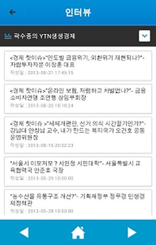 YTN NEWS FM 94.5의 새로운 애플리케이션 !언제 어디서든 생방송, 그리고 놓치셨던 방송까지 바로 들으실 수 있습니다. [주요 기능]■ 생방송 : YTN RADIO 24시간 실시간 생방송■ 북마크 : 한번 터치로 원하는 방송 5분전에 알림(푸시) 설정■ 편성표 : 일별 방송 스케줄, 프로그램 소개■ 메시지 : 실시간 방송 채팅 참여■ 사진첩 : 각 프로그램별 사진방 운영, 청취자 참여■ 환경설정 : 자동종료 타이머 설정■ 방송다시듣기 : 주요 방송 프로그램 언제든지 다시 듣기 [주요방송]- 정시뉴스- 전원책의 출발 새아침- 수도권투데이- 뉴스&뮤직, 전진영입니다.- 곽수종의 YTN생생경제- 뉴스! 정면승부- YTN 건강수첩- YTN 지식카페- 걸으며 생각하며 □ 지원 문의 : appytnfm@gmail.com▶안드로이드 OS 2.2 이상 설치 가능 합니다.