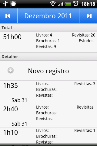 A tool for Jehovah’s Witnesses to record the time spent in service.There are already a few similar apps on Google play. The purpose of this one though is to be very simple, quick and user-friendly.You simply need to put the time and the number of placements. There is no recording of streets, houses, or titles of magazines placed.In addition you’ve got the following features:- Sending report via SMS or email with the ability to entirely configure the message and/or the receiver- Using a stopwatch - Keeping a track of Bible studies made easy- Rounding (up or down) the hours at the end of month- Counting RBC time (must activate in the settings)- Counting miles (must activate in the settings)- Setting monthly/yearly goals Polski ItalianoCurrently, the app is available in 8 languages: English, French, German, Portuguese, Spanish, Bulgarian, Polish and Italian.Many thanks to François Martins, David Lucio, Bruno Coelho, Lars Milde, Roumen Stratiev and Alessandro Re for the great help in translating the app. If someone wants to help me translate the app in other languages, I'll appreciate this very much.This is my very first Android app.But I'm already working on a second one: An app, or a tool, to help managing congregation's territories.***********NOTE: The Read Contacts permission is only for sending report purpose.The Write to external storage permission is for backup.