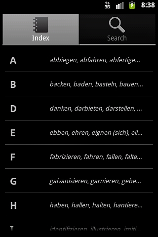 View over 1500 German verbs in 14 tenses. With simple navigation and built in search, you can find the verb you need in seconds. Note: this app does not require an Internet connection. All of the data is stored locally.