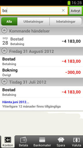Dessutom ingår:• Valutaomräkning mellan de vanligaste valutorna• Bevakning av de aktier och fonder du är mest intresserad av• Snabbvalsmeny för överföringar, betalningar och e-fakturor• Sparfunktioner där du kan räkna på ditt sparande och sätta upp personliga sparmål• Aktivering av personlig kod för inloggning• Aktuella börsnyheter med marknadsöversikt• Filmer där våra experter ger dig placeringstips• Direktnummer och information om du behöver spärra ett kort• Personlig service via telefon dygnet runt, alla dagar – på 23 språk
