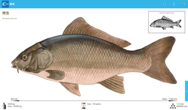 鱼星球 - 渔民最完整的指南。 在 ftlas 介绍鱼类 286 种主要 - 淡水(欧洲,亚洲,北美洲) - 海(洋)。 对于每个鱼给出:原来彩色插图,科学 在拉丁美洲,在 28 种语言,生物数据,栖息的场所,钓鱼场所,钓鱼的时间,甚至捕捞方法的名字命名。 对于许多种鱼类可以看到咬的日历在设定点 - 如果你安装了相关的应用程序 MP 钓鱼日历 Pro 应用程序与云钓鱼网站 www.mp-fish.com 相关。在这个网站上你可以看到照片才对你不计利息,在世界各地的渔民的渔获。 捕鱼此应用程序将变得更加有用,然后那五块钱,它的成本!