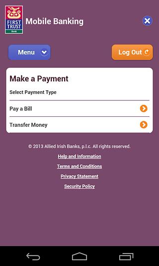 The First Trust Bank Mobile Banking App allows you to access the most popular Online Banking services on your Android/iPhone mobile.These features include:- Check your account balances and available funds- View recent and pending transactions- Transfer money between your First Trust Bank accounts*- Transfer money to any UK Bank or Building Society Accounts *- Pay bills*- Get up to date currency conversion rates using our foreign exchange calculator- Find your nearest branch and cash machine* You can transfer funds and pay bills to existing accounts and companies already set up on your Online Banking.CalculatorForeign exchange calculator - helps you work out the conversion of sterling to other currencies around the world.LocatorFind your nearest First Trust Bank branch or First Trust Bank cash machine anywhere in Northern Ireland.Getting startedIf you’re already registered for Online Banking, you can start using First Trust Bank Mobile Banking straight away. Just download the app, log on using your Online login details and start banking.If you’re not registered for Online Banking call 028 9034 6034, visit www.firsttrustbank.co.uk or call into your nearest branch to sign-up today.First Trust Bank is a trademark of AIB Group (UK) p.l.c. (a wholly owned subsidiary of Allied Irish Banks, p.l.c.), incorporated in Northern Ireland. Registered Office 4 Queen’s Square, Belfast BT1 3DJ. Registered Number NI 18800. Authorised by the Prudential Regulation Authority and regulated by the Financial Conduct Authority and the Prudential Regulation Authority.
