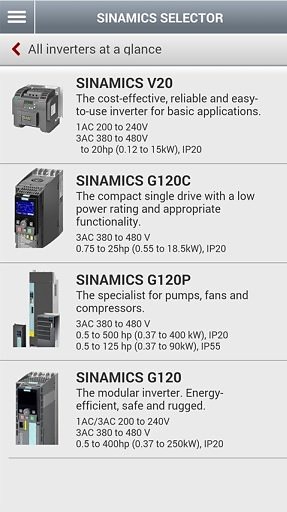 使用该 App,您可以选择 SINAMICS V20、G120C、G120P、G120 变频器的订货号。\\r