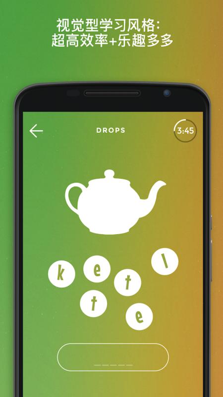 Drops 希望能够将你变成沉迷于学习的人。不管你的学习工具是多么的有效,如果你不能每天使用它,一切都是徒劳的。通过 Drops,词汇们将像水滴一样渗入到你的思维中,这将更适合你!
