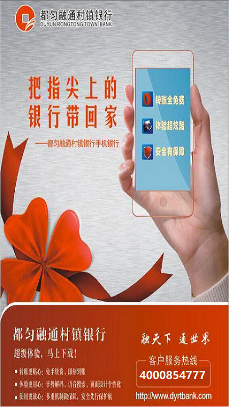 都匀融通村镇银行手机银行是专门为移动终端和智能手机客户打造的移动金融服务平台,拥有账户管理、转账汇款等金融服务。