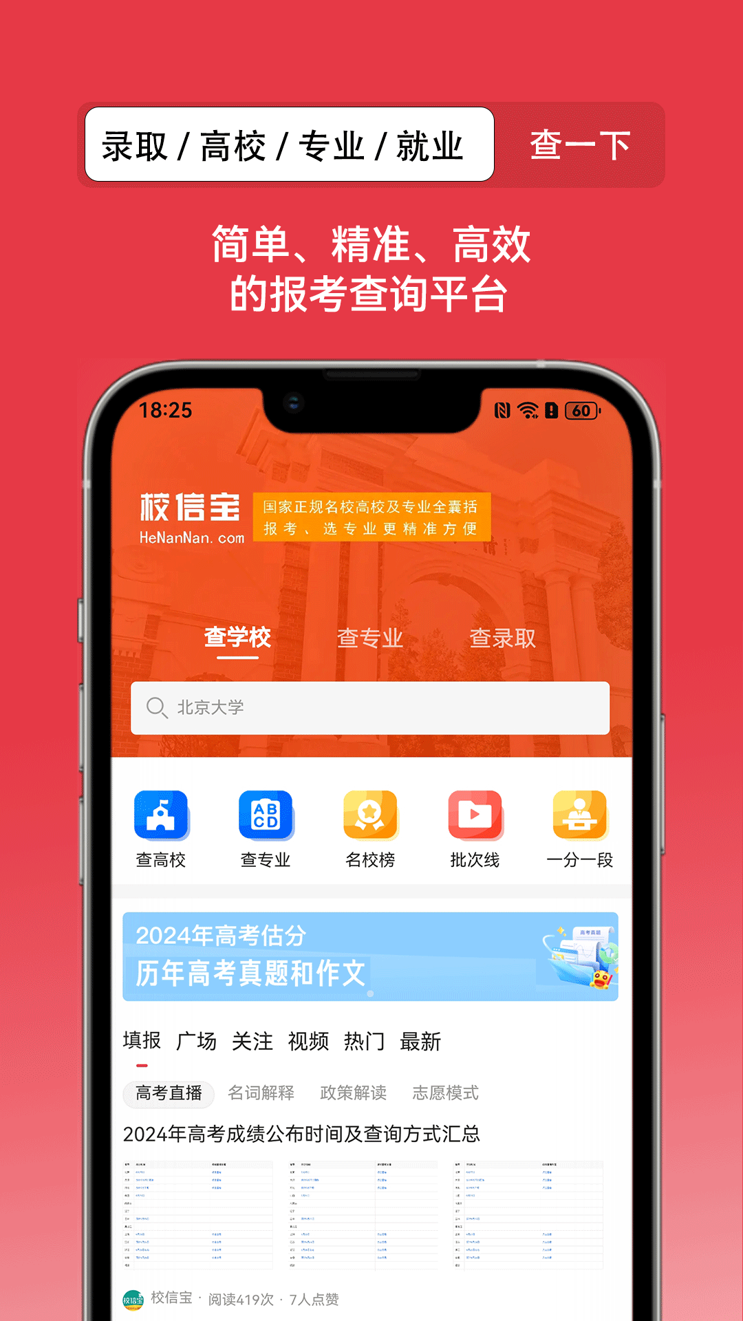 校信宝为您提供一站式智能高考志愿填报与校园生活服务,涵盖以下核心功能: