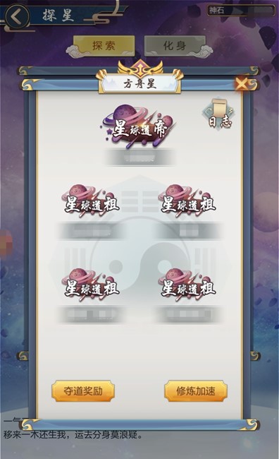 虚空之地是道友们齐心协力的开拓,夺道则又是大家论剑的比拼的擂台。每个星球上,有 1 个“星球道帝”和 4 个“星球道祖”的职位等待道友们为此展开争夺。如果该职位目前空缺,纳入囊中是不费什么力气的。如果已经有其它道友占领了职位,就需要和 ta 进行一番较量了。夺下职位后,能获得 1 个小时的化身修炼加速权益和每日的职位奖励。需要注意的是,道友们在职期间会有一段时间的保护期,在此期间是不可以夺走官职的,还望大家量力而行哦~