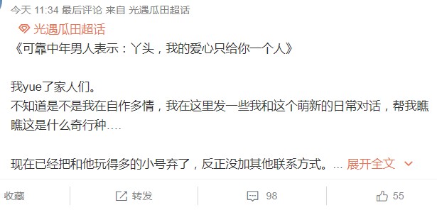 瓜田超话下,还有这样一位姐妹吐槽了她惨痛的网恋教训。一次偶然,在暮土玩的她结识了一个巫师扮相的男子,因为性格相符,风趣幽默加了好友,后来慢慢熟络一两个月,便被表白了,每天一起游戏语音聊天,好似异地的情侣一样。只是后来让她没想到的是,这个自称 22 岁的男子现实中已 37 岁,早已结婚并有一个三岁的孩子。