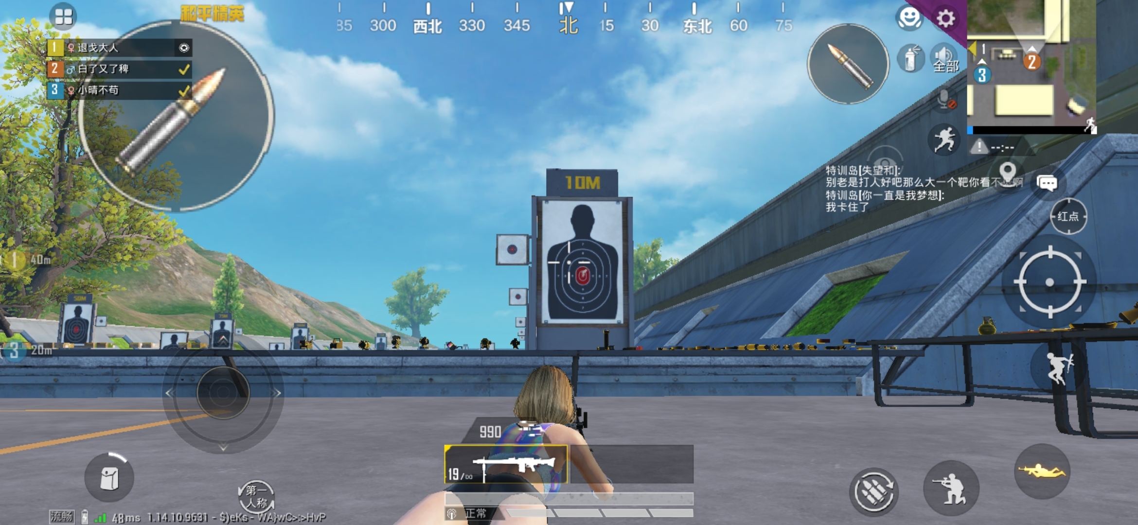 子弹搜索经量多一些,这把枪打起人来,真费子弹,可能一波团战下来二百发子弹都不够用的,建议 MG3 配上大盘鸡,两把枪携带三百五十发子弹,再来俩烟雾和手雷,你自己就是个火力输出点。到了中后期,就畏畏缩缩一点,趴着求生,决赛圈没人能扛得住 MG3 的快速子弹。