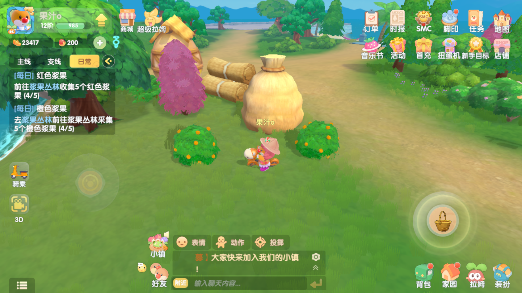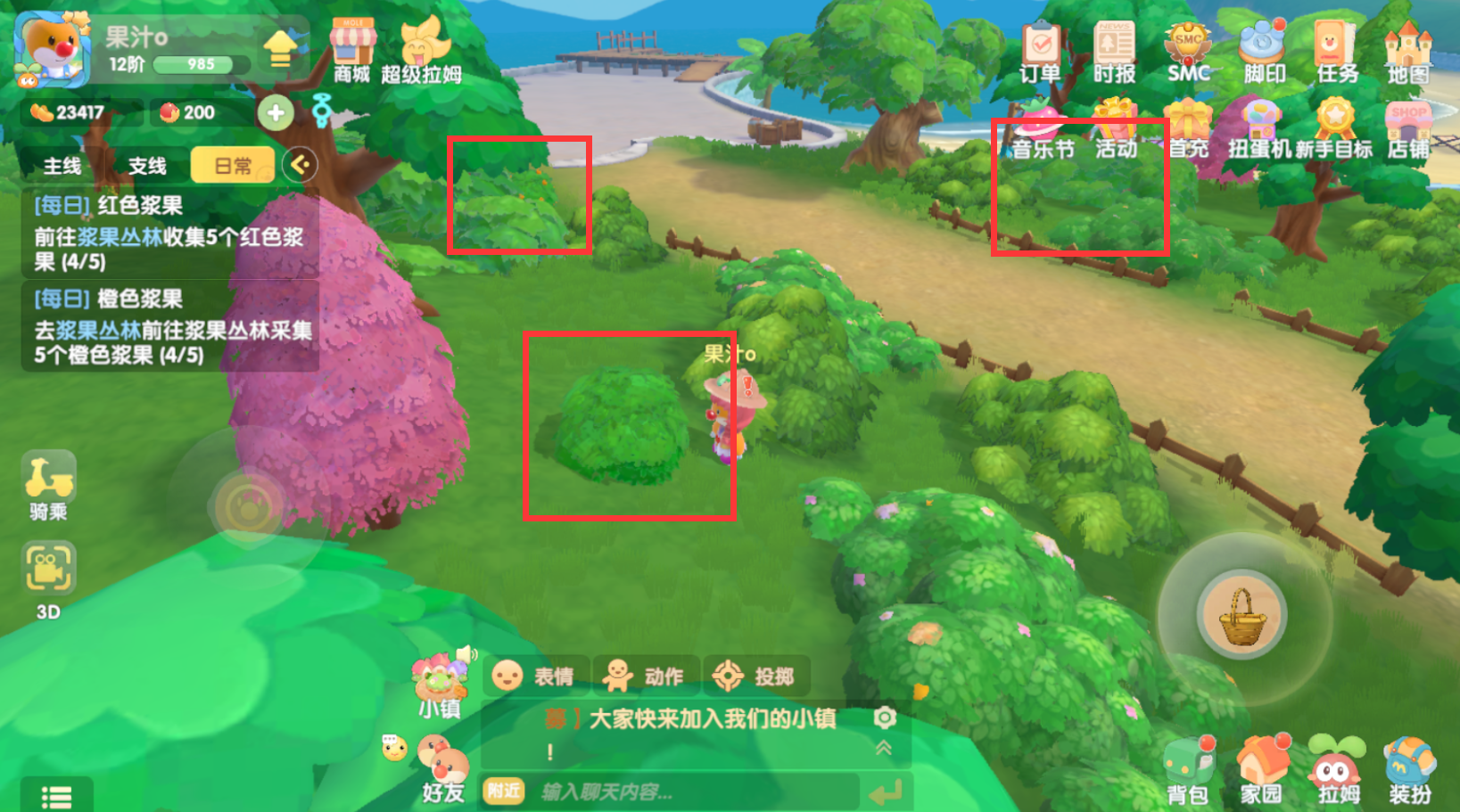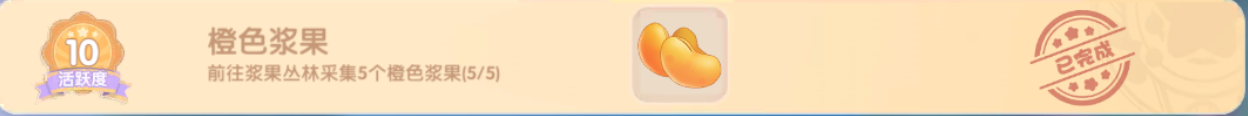 1.采集橙色浆果*5,奖励:摩尔豆,活跃度*10。