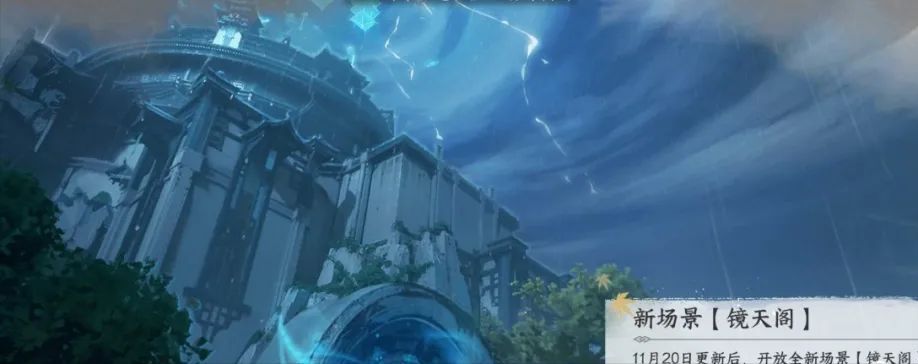 新场景探索【镜天阁】11 月 20 日更新维护后,全新场景【镜天阁】即将开放,以“镜”为核心的全新探索机制及探索内容。探索镜天阁,将获得独珍装备【千刃熔锋戒】、【金刚通臂·匡世】等江湖技能、江湖特质、惊喜外观等待你解锁!