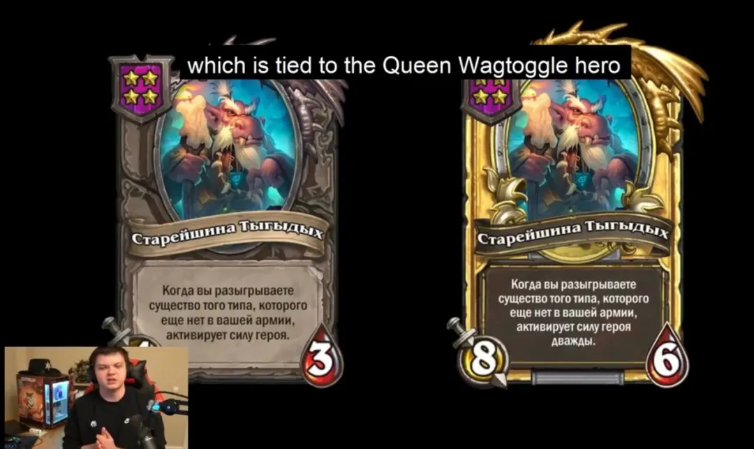 托瓦格尔女王的专属伙伴应该是暗影崛起里的长者塔格瓦格(随从版大蜡烛),这个技能很有意思,按道理说如果能找到很多张场面上没有的随从牌就能触发好多次,不过有一个疑问就是等到后期场上有融合怪的时候,这个专属随从不就废了吗?