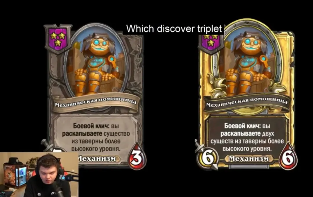 三星 3/3 机械,战吼:发现一个更高等级的随从。金卡发现两个。