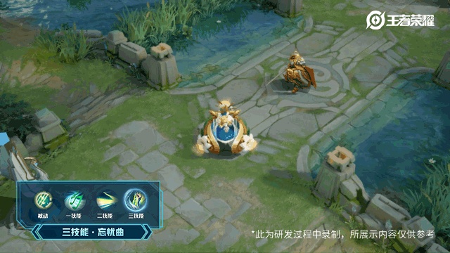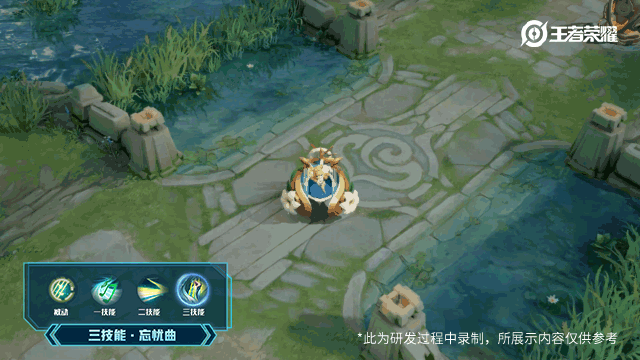 相比于前两个技能的优化,大招的改动可以说是最大的了。开启大招的蔡文姬大招边缘会出现花朵,身边伴随着音符的转动,加上中间蹦蹦跳跳的蔡文姬,不得不说有点中二的感觉。