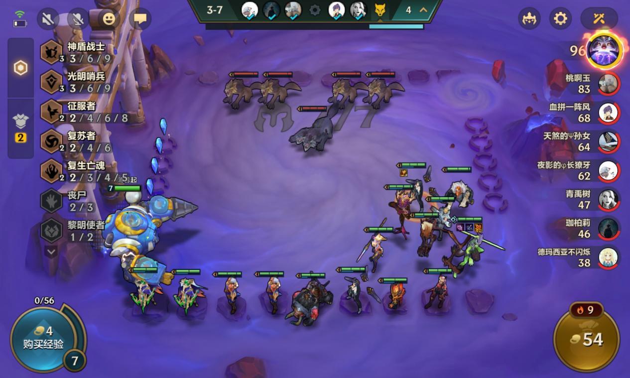 打狼阶段我们凭借着连胜的经济拉到 了 7 级,此时我们选择开始搜卡,把阵容内的低费卡全部换下去。体系内的牌来的多可以选择性的追 3.