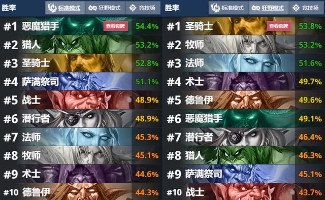 但是标准和狂野牧师的境遇可谓天差地别,标准模式胜率排在末尾,处于半隐藏的状态,而狂野则是仅次于圣骑高居第二。