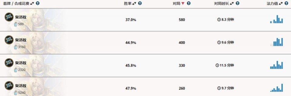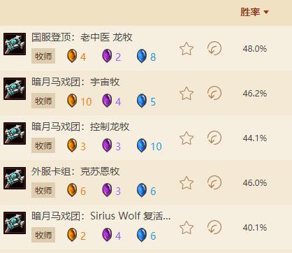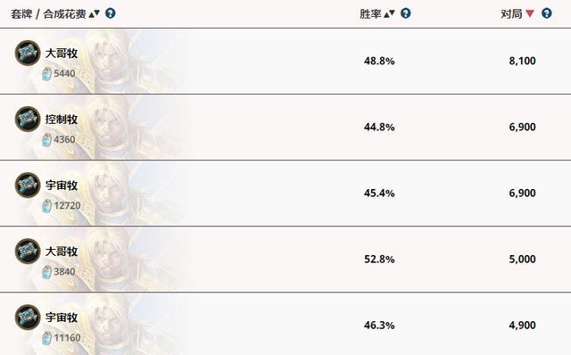 下面是我随便截取的国服和外服的牧师卡组数据,很少有卡组胜率能到 50%(图 1 国服,图 2 外服钻石到传说分段)。