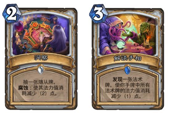 卡组整体费用曲线偏低,使得操作更加灵活。卡组看似很薄,其实资源非常丰富。解读手相为手牌的低费法术减费,之后配合织巢者就能刷一大波法术。