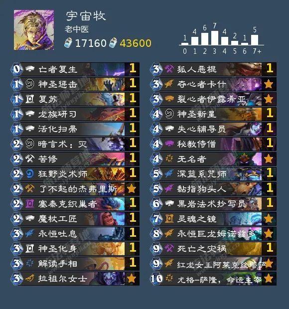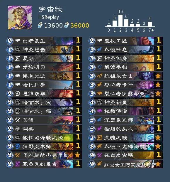 这是我在 hsreplay 上找到胜率和使用场数都较高的宇宙牧,钻石到传说分段胜率高达,额,48.8%(无奈脸)我真的尽力了,在 1000 场以上的宇宙牧中,这个构筑的胜率最高了。