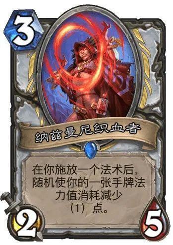 之前有个热修补丁,修复了纳兹曼尼织血者给 0 费牌继续减费的 bug。因此现在有不少玩家会在牧师卡组中加入纳兹曼尼织血者,东少我在黄金赛第一轮遇到的对手就用了类似的构筑。