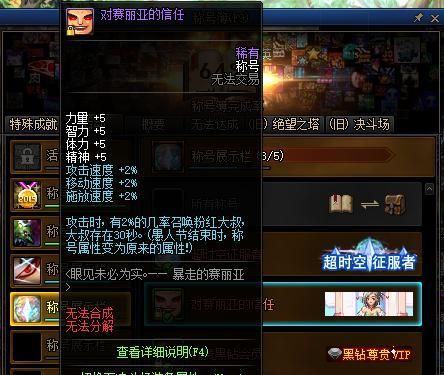 对赛利亚的信任是某一年的愚人节系统赠送的称号,该称号的原属性非常逆天,四维+300,三速+50%,导致很多玩家在不知情的情况下把春节称号打上去了,结果在过了一天之后属性变天,才发现是系统给玩家开的一个玩笑,不过当时单刷火山在地板娘的时候还是挺好用的。