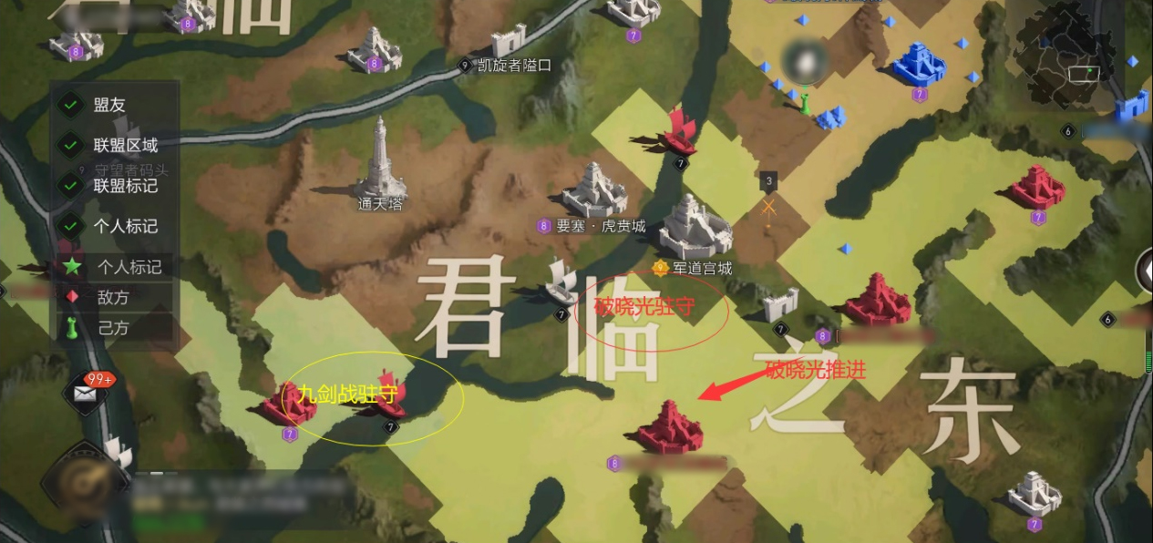 3.而在正面战场上,主盟【破晓光】先是只认准了【云梦泽】与之交战,而迟迟不与【九剑】发生武力冲突。