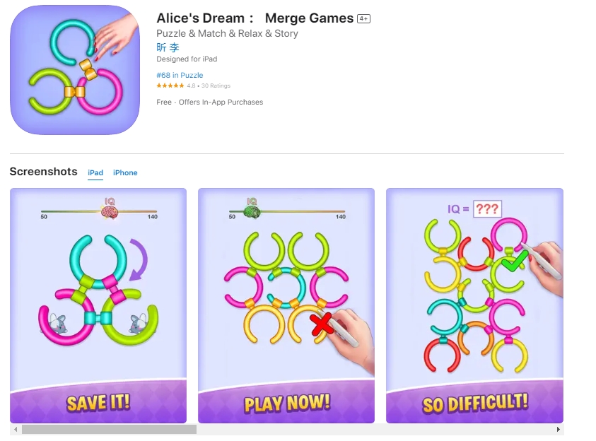 去年年中开始,又一款休闲游戏月流水超过了 5000 万元,目前预估月收入达到了 7000 万元左右。更重要的是,这款名为《爱丽丝的妙趣仙境(Alice’s Dream:Merge Games,原名 Alice’s Dream:MergeIsland)》的休闲游戏的发行商赤子城主业并不是做游戏研发,反而是做社交业务出身。