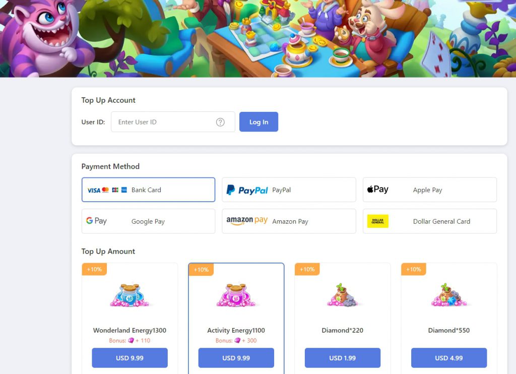 游戏采用了《爱丽丝梦游仙境》这个儿童文学公共 IP 作为游戏故事的主线,加入了爱丽丝、兔子、猫和皇后等经典角色,并且在传统合并消除的基础上,将“套圈解谜”副玩法做成了游戏的主要进度之一。玩家们需要将不同颜色的指环按照顺序解开,最终所有指环解开即可通关并得到金币。