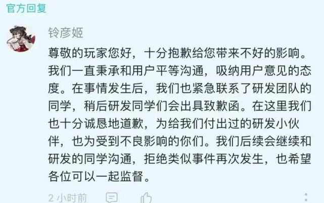 最终在 18 日下午 3 点左右,哆爱咪的官方微博,以及游戏的某 T 平台页面上出现了一封致歉信,信中再次对当事人表达了歉意,同时表示将与 HR 解除劳动合同。