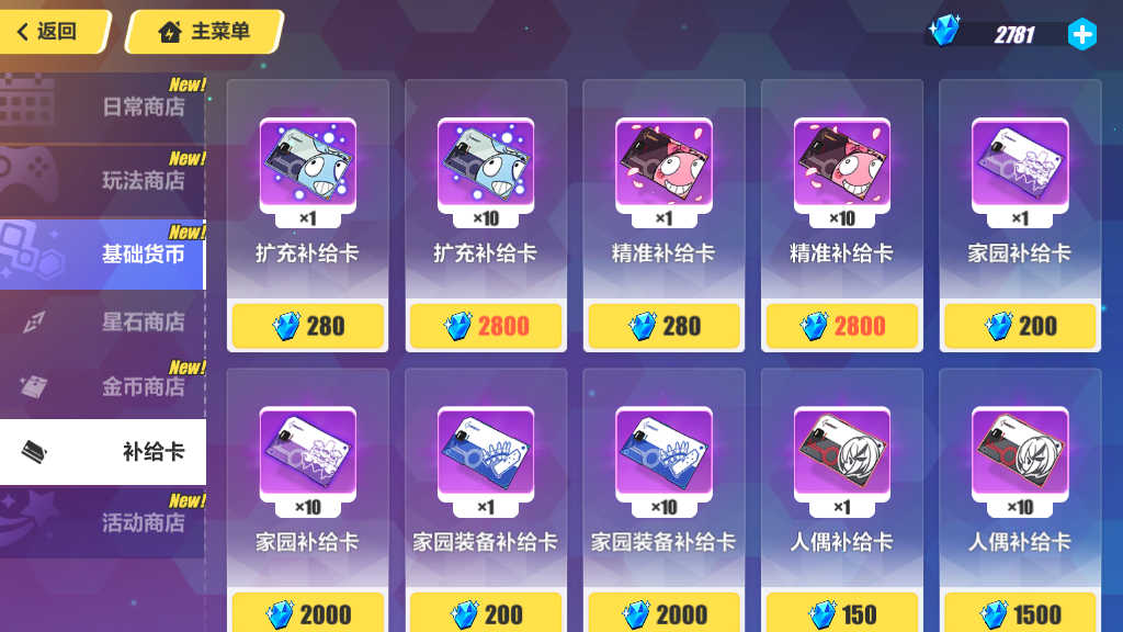 一般抽角色扩充角色补给卡(淡蓝色,280 水),抽武器圣痕精准补给卡(红色,280 水/发),抽人偶(黑色,150 水/发),其他的看图