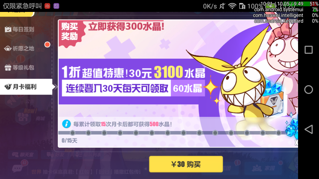 小月卡指水晶月卡,30 块 30 天,只要每天登录就能领 60 水