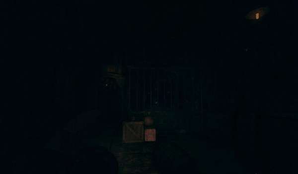 出门后右转,这里的门由于开启发动机自动打开,到梯子下面,下拉把手把上面给两个木桶放下来,这样就能顺着梯子上去了。