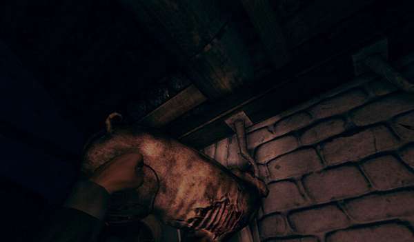 出门后直走来到屠宰场,先从侧面小屋子的墙壁出去,不远处的仓库门能打开,里面有一只空油桶,拿着油桶回到屠宰场.
